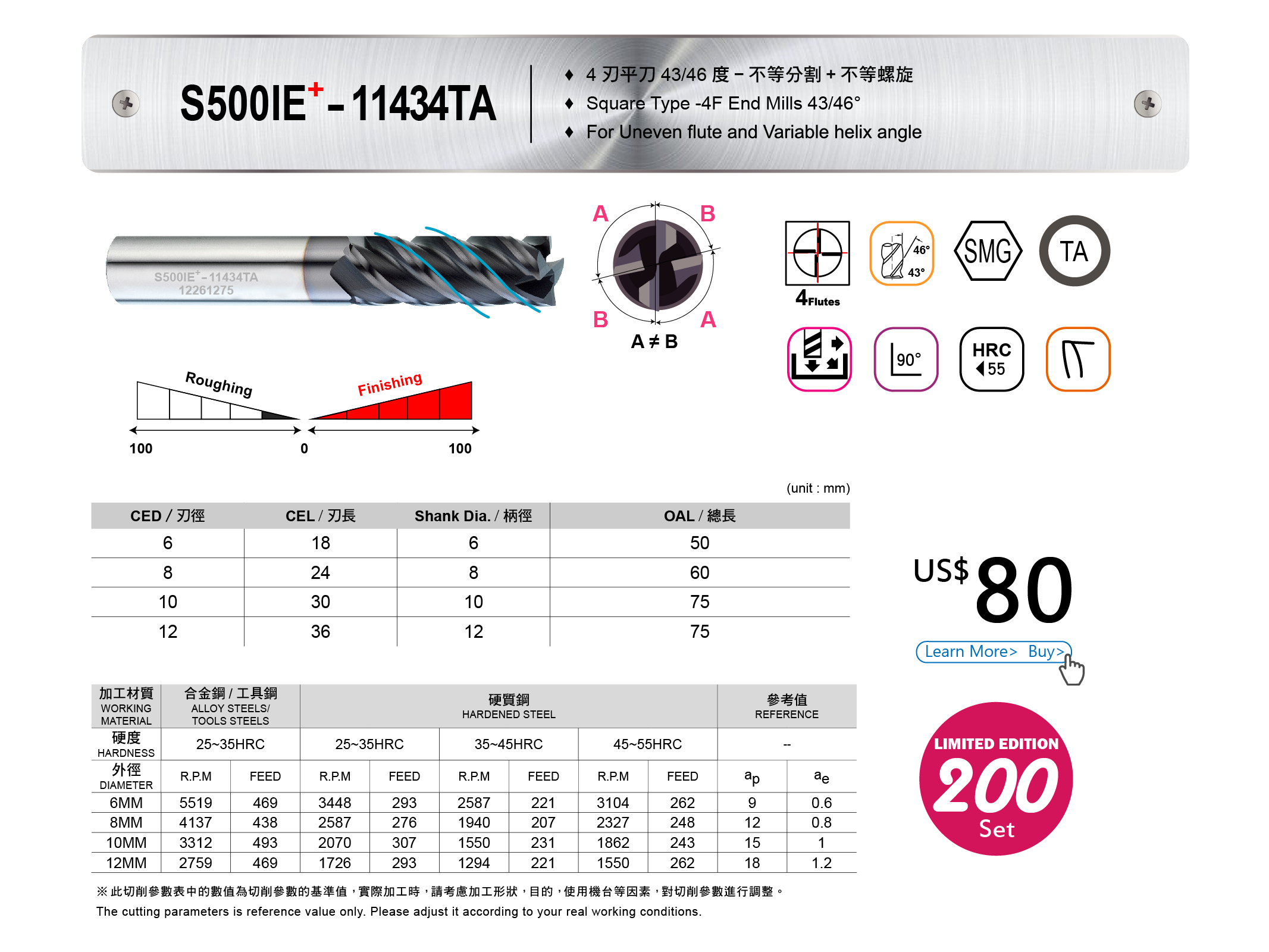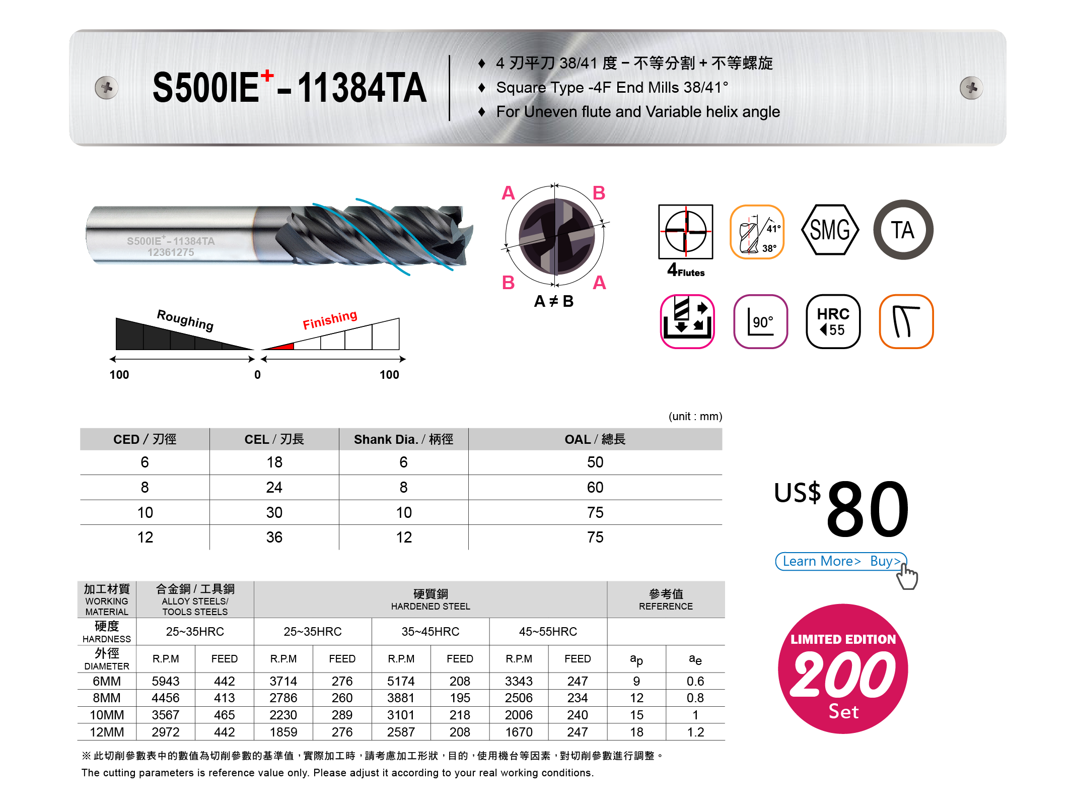 不等分割套裝組限量發售 Uneven flute and Variable helix angle